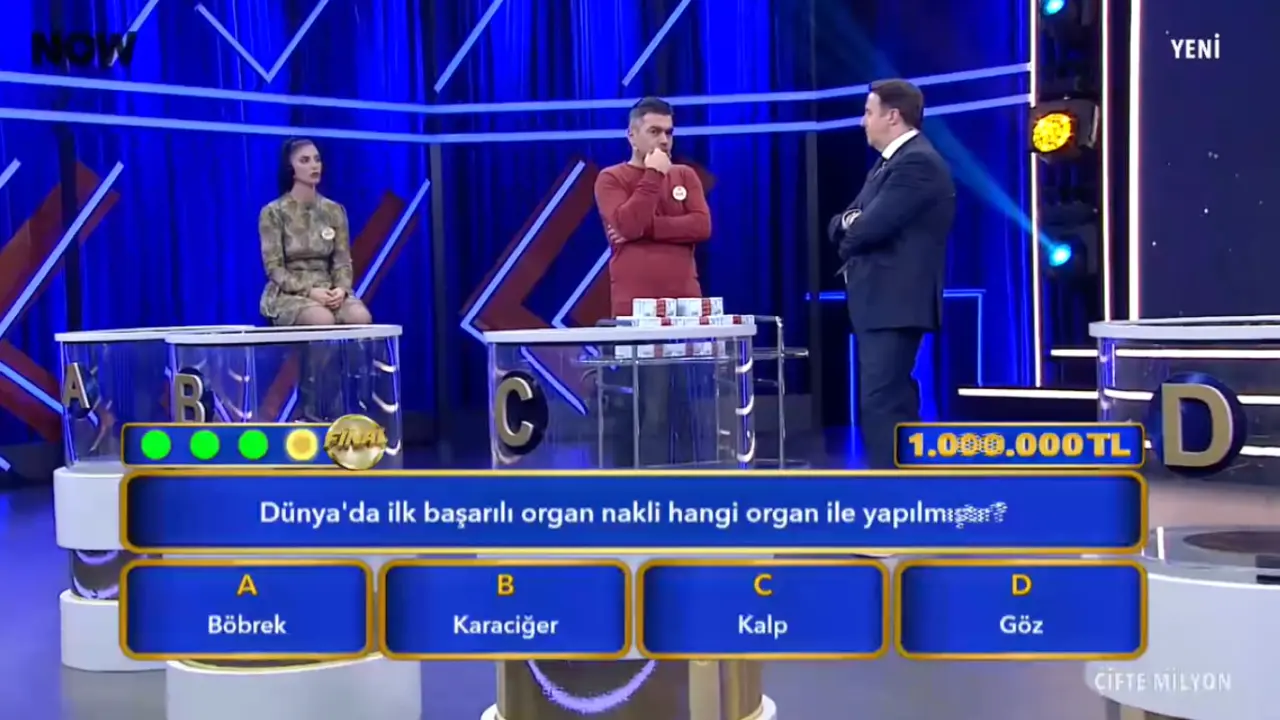 İstanbul, 3 Ocak 2026 - NOW TV ekranlarında yayınlanan popüler bilgi yarışması "Çifte Milyon", dün akşamki bölümüyle yine Türkiye'nin gündemine oturdu. Sunucu İlker Ayrık tarafından sorulan bir soru, izleyicileri şaşkına çevirdi ve sosyal medyada viral hale geldi. Soru: "Öbür gün çarşamba ise dün hangi gündür?" Options ise şöyle: A) Pazar, B) Pazartesi, C) Cuma, D) Cumartesi.