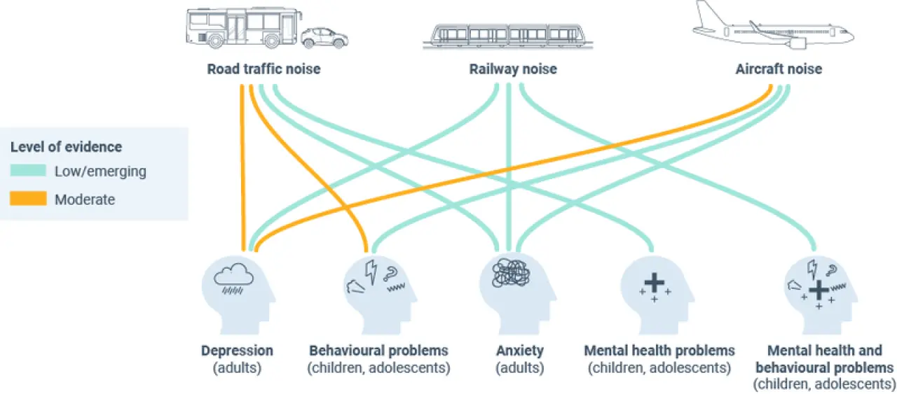 Yol trafiği gürültüsündeki artış depresyon riskinde %3, anksiyete riskinde %2 artışla ilişkilendiriliyor.
