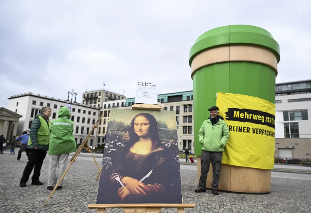 Almanya’nın başkenti Berlin’in simgesi Brandenburg Kapısı önünde, Greenpeace aktivistleri dikkat çekici bir çevre eylemi gerçekleştirdi. Çevre örgütü, tek kullanımlık bardakların yol açtığı atık sorununa odaklanmak için dev bir bardak maketiyle farkındalık eylemi düzenledi. Eylem, çevre kirliliğine ve sürdürülebilir olmayan tüketim alışkanlıklarına karşı güçlü bir mesaj vermeyi amaçladı.