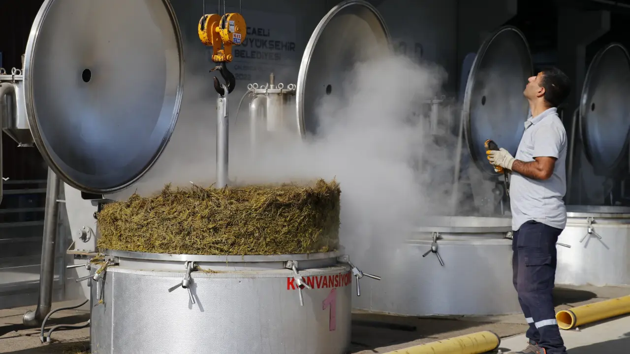 Hasat edilen biberiye, İzmit’teki distilasyon tesisinde işlenerek uçucu yağ elde ediliyor.