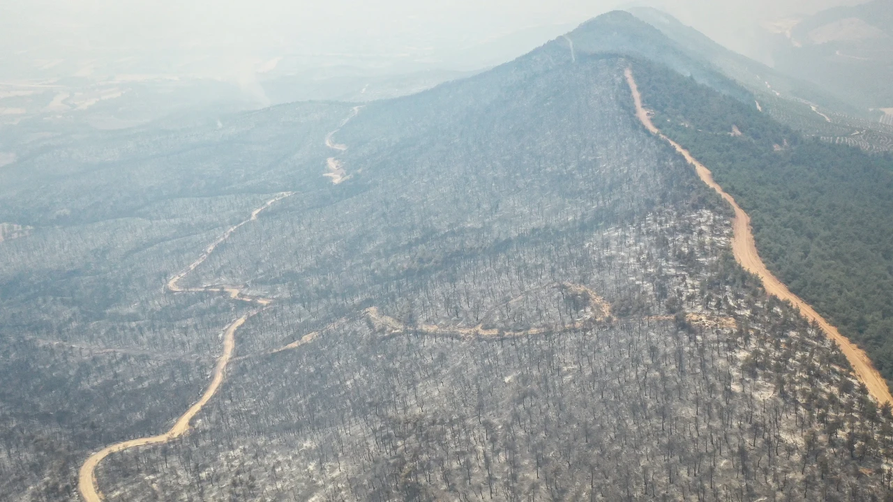 Yangının etkilediği alanlar havadan dronla görüntülenirken, ortaya çıkan tahribat gözler önüne serildi.