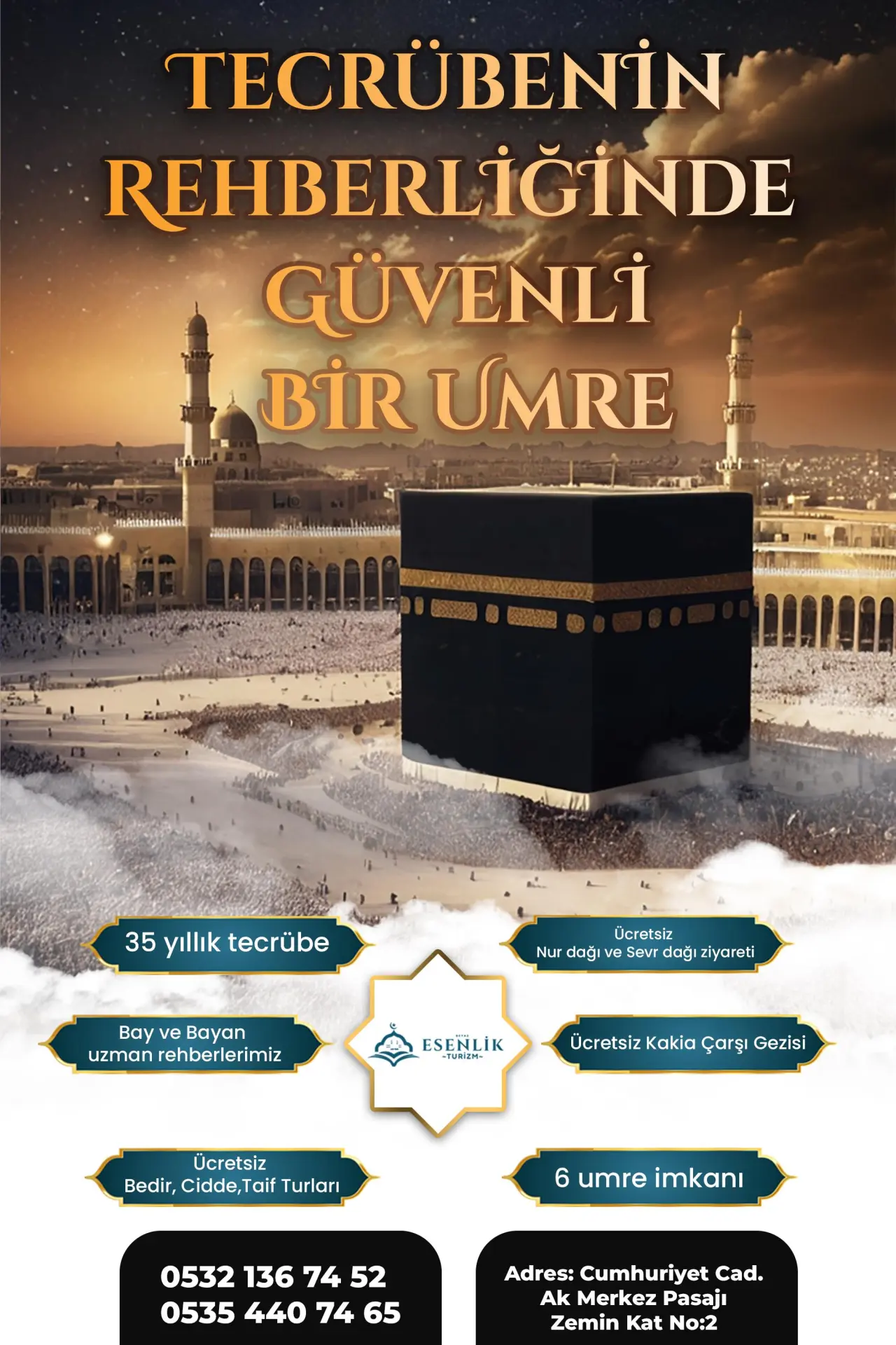 Beyaz Esenlik Turizm, sektör deneyimi ve güvenilir rehberlik hizmetleriyle 2025-2026 sezonu için umre turlarını duyurdu. “Tecrübenin Rehberliğinde Güvenli Bir Umre” sloganıyla yola çıkan firma, Hac ve Umre adaylarına unutulmaz bir manevi deneyim sunmayı hedefliyor. Beyaz Esenlik Turizm markasıyla hizmet veren şirket, bay ve bayan uzman rehberleriyle, nur dağı, Arafat, Müzdelife ziyareti ve ücretsiz Kakia Çarşı gezisi gibi özel imkanlar sunuyor. Ayrıca, Bedir, Cidde, Taif turları ve 6 umre imkanı ile zengin bir program hazırladı.