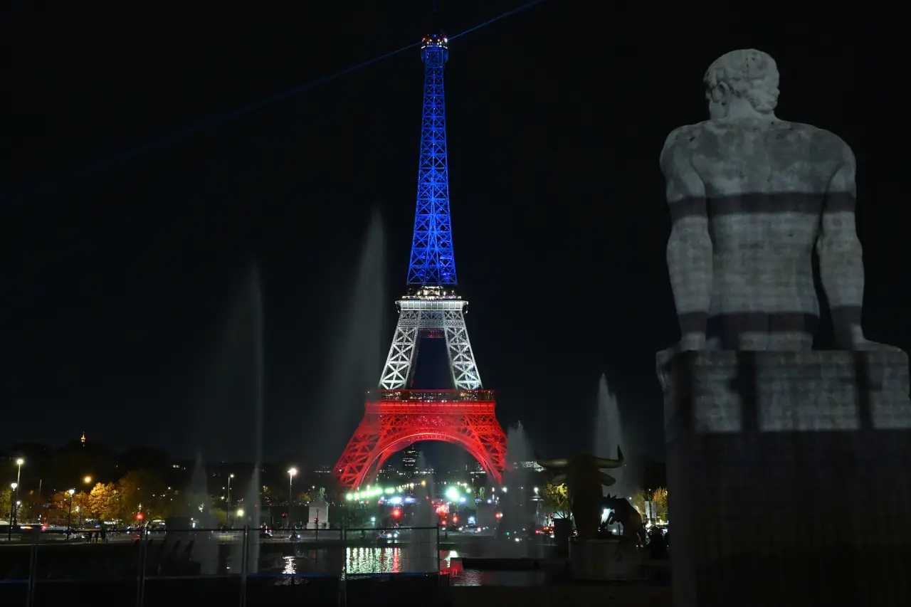 Eyfel Kulesi, gece boyunca Fransız bayrağı renklerinde ışık gösterisiyle, terör kurbanlarına saygı ve dayanışma mesajı verdi.