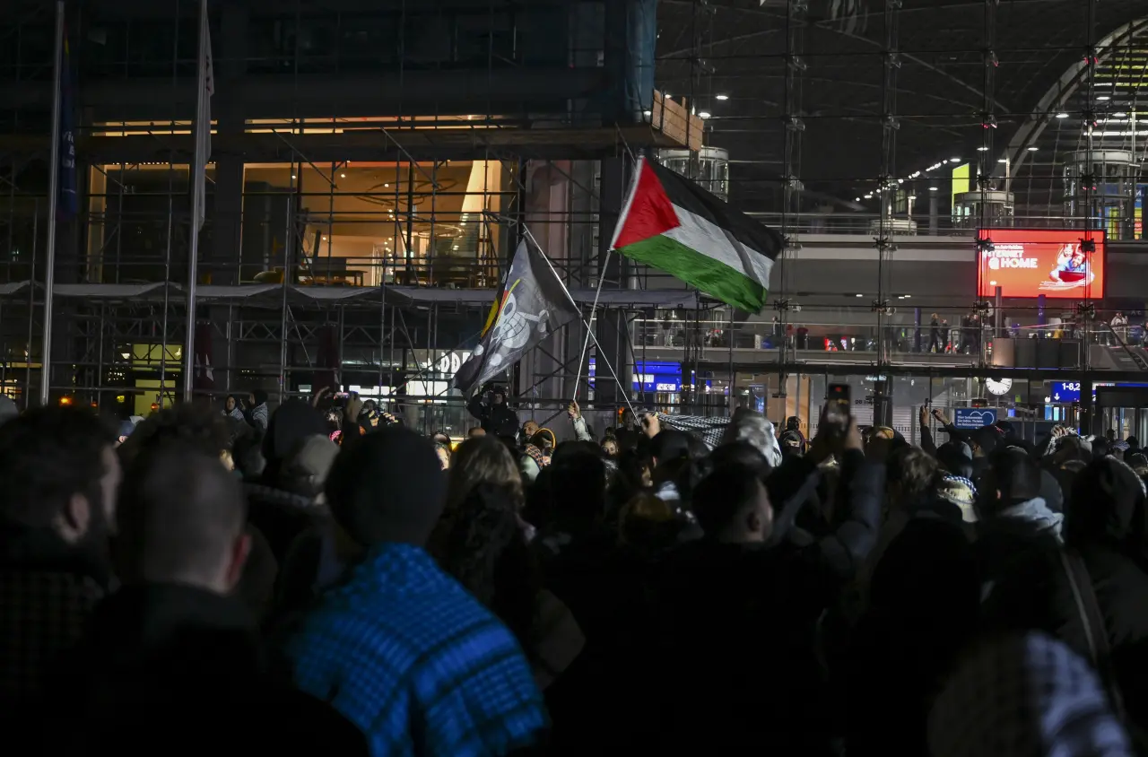 Almanya'nın başkenti Berlin'de, Gazze ablukasını kırmak için yola çıkan Küresel Sumud Filosu'na destek için bir gösteri düzenlendi. Ana tren istasyonunda bir araya gelen yaklaşık 300 kişi, filoya yönelik İsrail saldırılarını protesto etti.