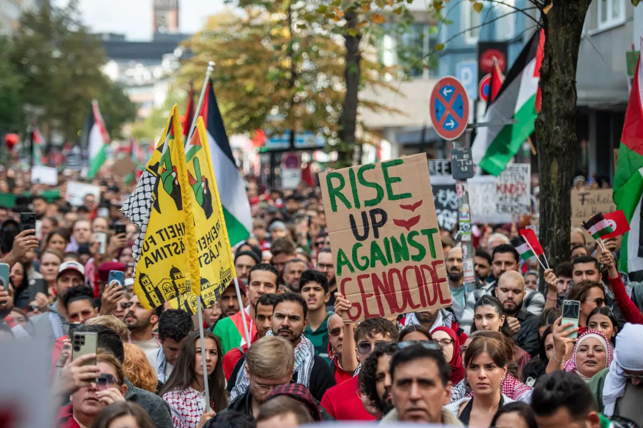 Almanya’nın Düsseldorf kentinde binlerce kişi, Gazze’de süren İsrail saldırılarını ve Alman hükümetinin Gazze politikasını protesto etmek amacıyla sokaklara çıktı. Kent merkezinde toplanan göstericiler, Filistin bayrakları ve pankartlarla barış çağrısı yaptı.