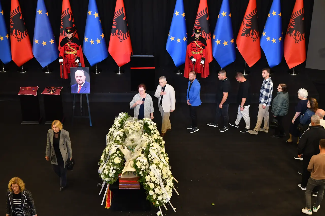 Cenaze töreni, Tiran'daki Kongre Sarayı'nda resmi bir merasimle başladı. Törene Arnavutluk Meclis Başkanı Niko Peleshi, Başbakan Edi Rama, Kosova Başbakanı Albin Kurti, Kuzey Makedonya'dan üst düzey yetkililer, bakanlar, milletvekilleri, siyasi parti temsilcileri ve binlerce vatandaş katıldı. Saygı duruşunun ardından Başbakan Rama bir konuşma yaptı. Nano'nun ailesi ve yakınları törene katılırken, naaş vatandaşların katılımıyla son yolculuğuna uğurlandı.