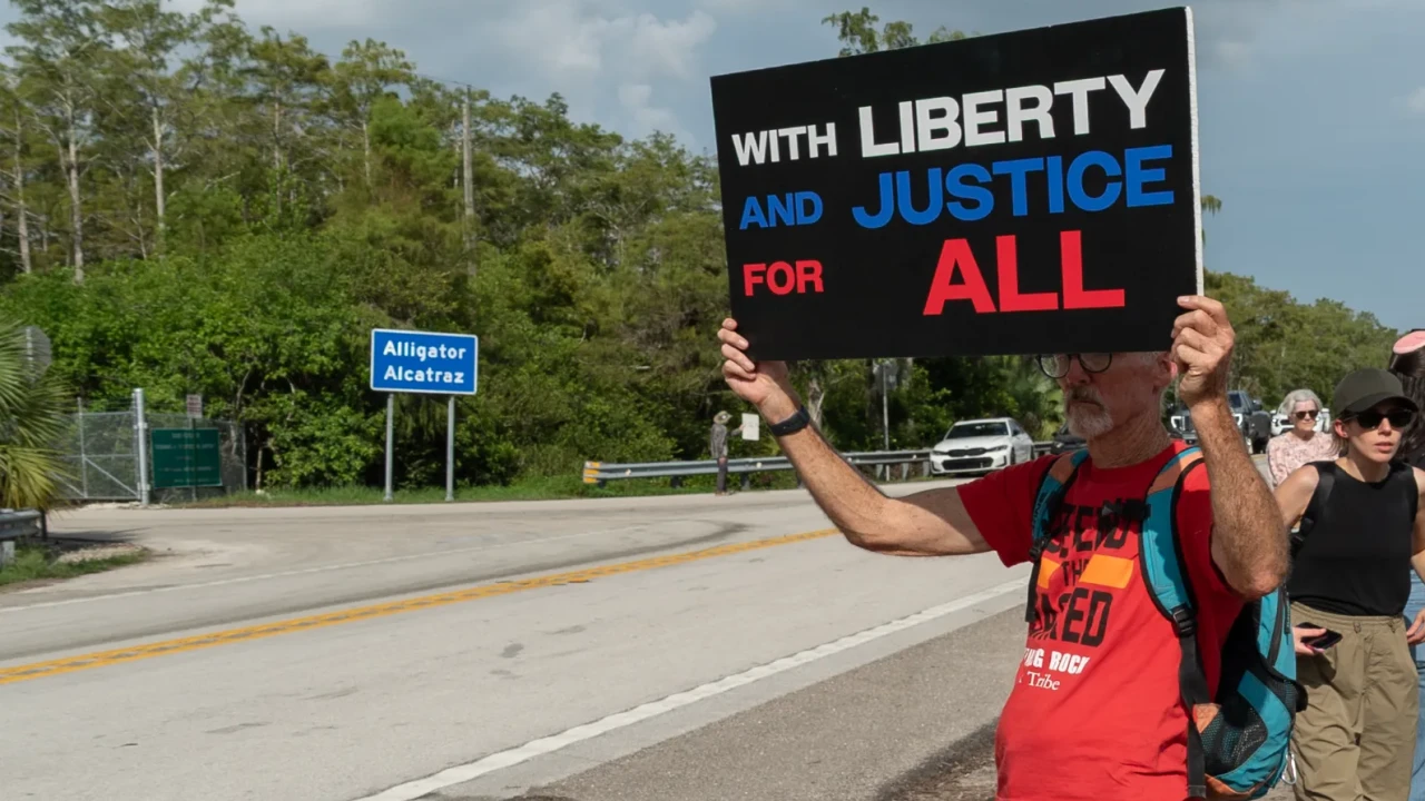 ABD’nin Florida eyaletinde, federal bir yargıcın "Timsah Alcatraz (Alligator Alcatraz)" olarak bilinen göçmen gözaltı merkezinin bir kısmının kapatılmasına hükmetmesi üzerine, karara karşı çıkan protestocular Everglades bölgesindeki tesisin girişinde toplandı. Göçmen gözaltı merkezinin kapatılmasını protesto eden vatandaşlar, kararın iptali için gösteri düzenledi.