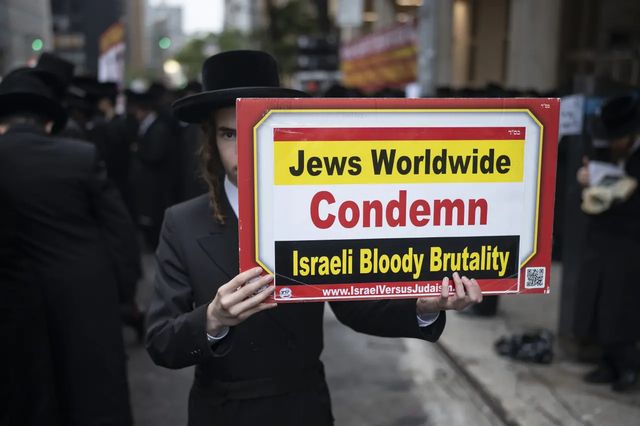 Okul otobüsleriyle alana ulaşan Ortodoks Yahudiler, "Yahudi halkının 1 numaralı düşmanı Netanyahu ve Ben Gvir", "Siyonizm karşıtı olmak Yahudi düşmanı olmak değildir" ile "Yahudileri siyonist orduya katılmaya zorlamayı durdurun" yazılı pankartlar taşıdı. Protesto alanında Yidişçe konuşmaların yapıldığı platformun arkasında, "Netanyahu: bizim adımıza konuşmuyorsun" yazılı büyük bir afiş yer aldı.