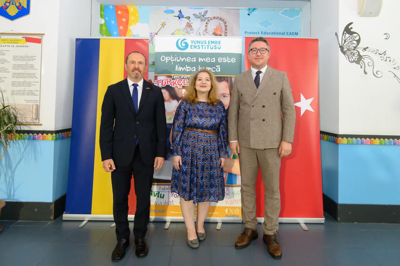 Başkent Bükreş’teki 80 Numaralı Ortaokulda gerçekleştirilen törende, Türkiye’nin Bükreş Büyükelçisi Özgür Kıvanç Altan, YEE Romanya Müdürü Mustafa Yıldız, Okul Müdürü Tatiana Ramona Rostas Covalev, öğretmenler, öğrenciler ve veliler hazır bulundu.