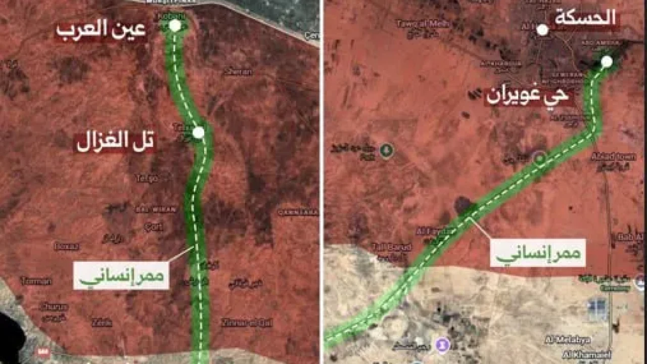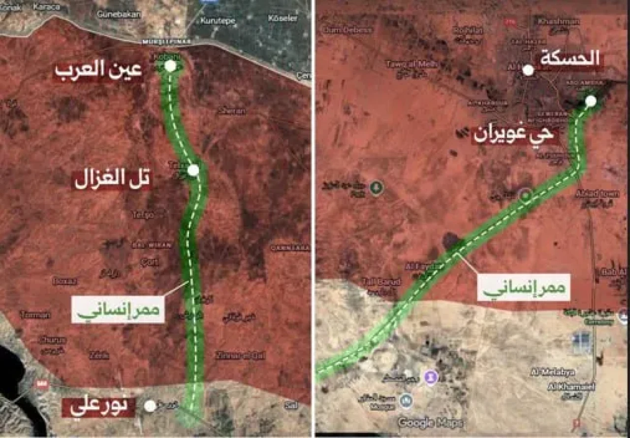 Yapılan açıklamaya göre, birinci insani koridor Haseke Valiliği ile koordinasyon içinde, Rakka–Haseke yolu üzerinde Tel Davud köyü yakınlarında belirlendi. İkinci koridor ise Halep Valiliği ile koordinasyon sağlanarak, M4 karayolu üzerindeki Aynularab kavşağında, Nur Ali köyü yakınında oluşturuldu.