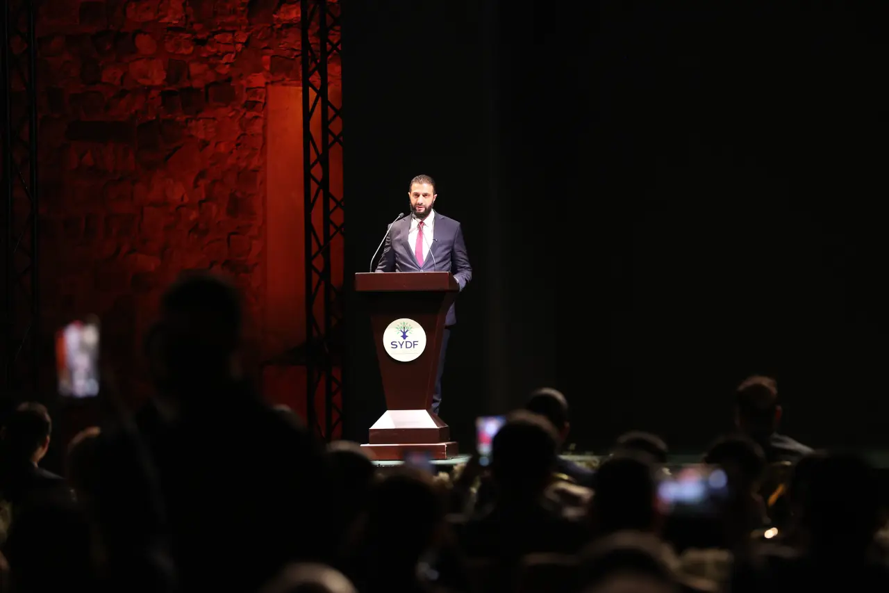 Cumhurbaşkanı Ahmed Şara, törende yaptığı konuşmada, Suriyelilerin ülkenin yeniden inşa ve canlanma sürecinde tarihi bir dönüm noktasında olduğunu vurguladı. Şara,