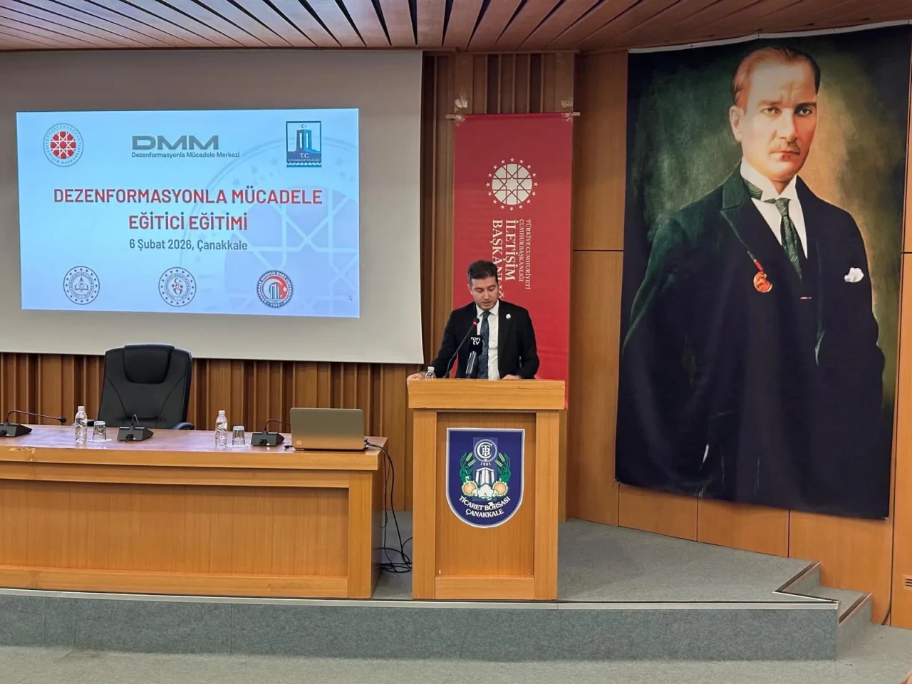 Cumhurbaşkanlığı İletişim Başkanlığı Çanakkale Bölge Müdürü Mustafa Tolga Karaoğlu ise dijitalleşmeyle birlikte doğru bilgiye ulaşmanın her geçen gün zorlaştığını belirtti. Yanlış bilgi ve dezenformasyonun yalnızca bireyleri değil, toplumsal huzuru, kamu düzenini ve ortak aklı da doğrudan etkilediğine dikkat çeken Karaoğlu, dezenformasyonla mücadelenin herkesin ortak sorumluluğu olduğunu vurguladı.