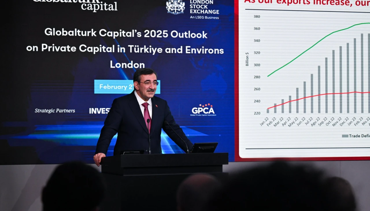 Londra Borsası'nda Globalturk Capital tarafından düzenlenen Türkiye ve Bölgesindeki Özel Sermaye Yatırımları 2025 Görünümü Konferansı kapsamında uluslararası yatırımcılarla bir araya gelen Yılmaz, Türkiye ekonomisindeki güncel gelişmelere ilişkin değerlendirmelerde bulundu.