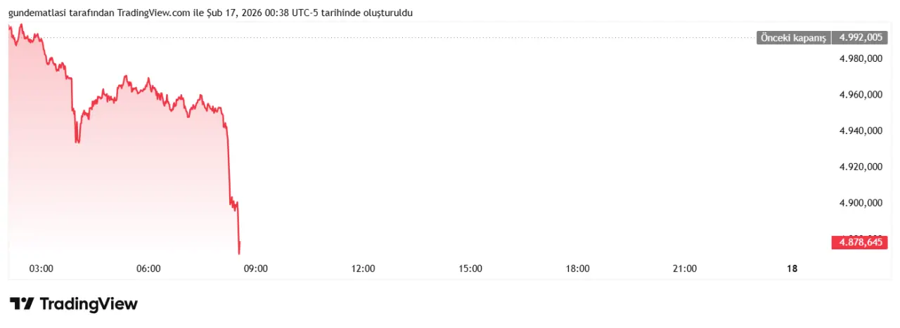 Haftanın ilk işlem gününde ABD piyasalarının kapalı olması nedeniyle ons altın hareketleri görece sınırlı kaldı ve günlük kapanış 5000 dolar seviyesinin altında gerçekleşti. Yeni işlem gününde Asya seansında satış baskısının artmasıyla birlikte fiyat 4872 seviyesine kadar geriledi.