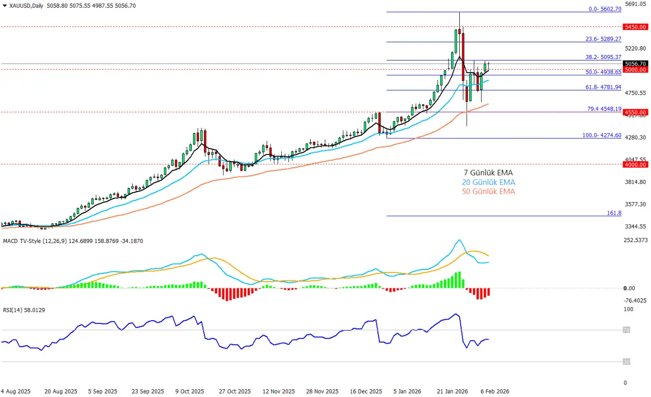 Kısa vadede satıcılı seyir ön planda olsa da uzun vadeli yükseliş trendi henüz bozulmuş değil. 4922–5000 bandı içerisinde dengelenme çabası görülebilir. 5000 dolar üzerinde gerçekleşecek günlük kapanışlar yukarı yönlü senaryoyu güçlendirebilirken, 4920 seviyesi altındaki kalıcı kırılımlar daha derin düzeltme riskini artırabilir.