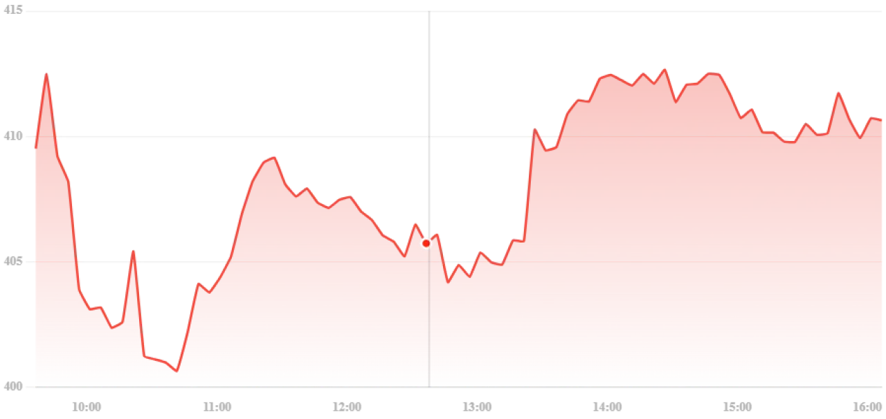Hisse, gün içinde 400,51 dolar seviyesine kadar gerileyerek kısa süreli panik satışına sahne oldu. Daha sonra kısmi toparlanma ile 410 dolar bandına yerleşti.