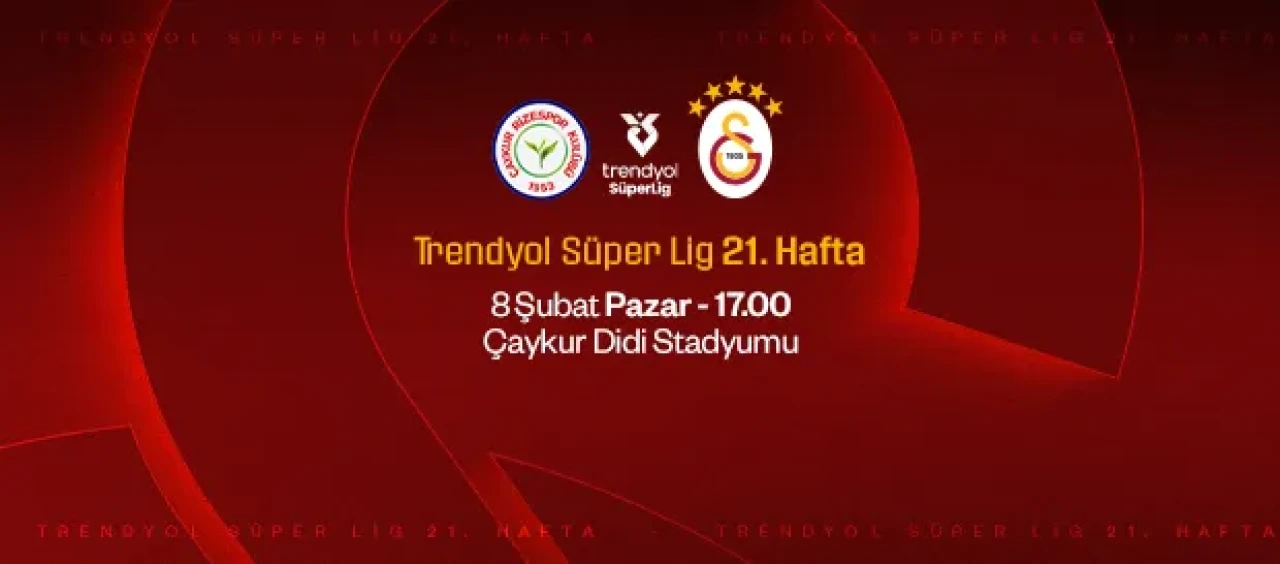 Trendyol Süper Lig’in 21. haftasında Çaykur Rizespor ile Galatasaray karşı karşıya gelecek. 8 Şubat Pazar günü Çaykur Didi Stadyumu’nda oynanacak mücadele saat 17.00’de başlayacak.