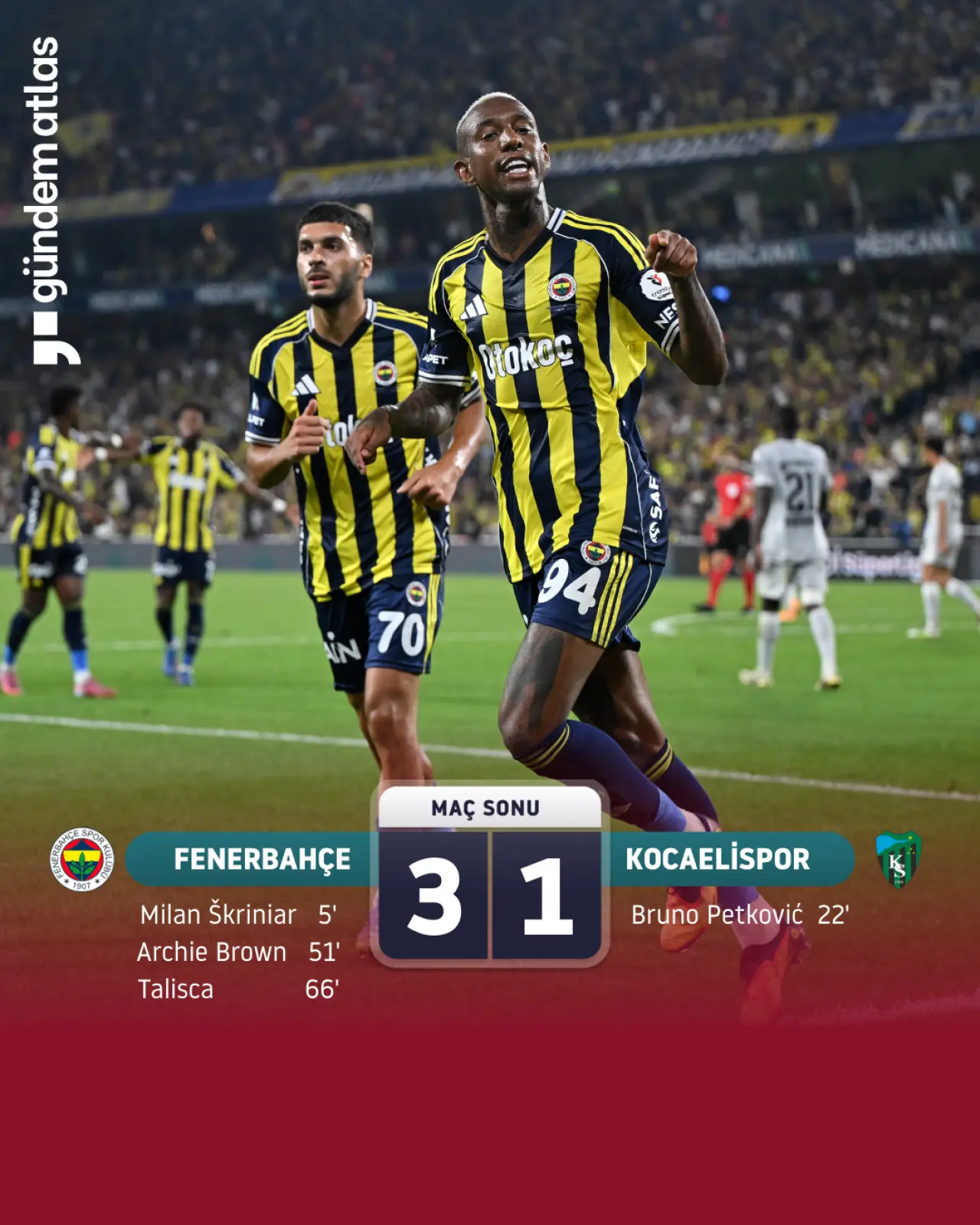 Sezon başında transfer edilen İngiliz futbolcu Archie Brown, Fenerbahçe formasıyla 2. golüne ulaştı. Feyenoord’a karşı Şampiyonlar Ligi’nde fileleri havalandıran Brown, Kocaelispor’a karşı Süper Lig’de de gol sevinci yaşadı.