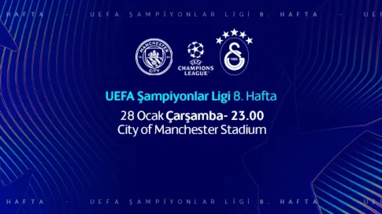 Galatasaray, UEFA Şampiyonlar Ligi 2025/26 sezonu lig aşamasının son haftasında deplasmanda İngiltere temsilcisi Manchester City ile karşı karşıya gelecek. Etihad Stadyumu’nda oynanacak mücadele TSİ 23.00’te başlayacak ve TRT 1’den canlı yayınlanacak.
