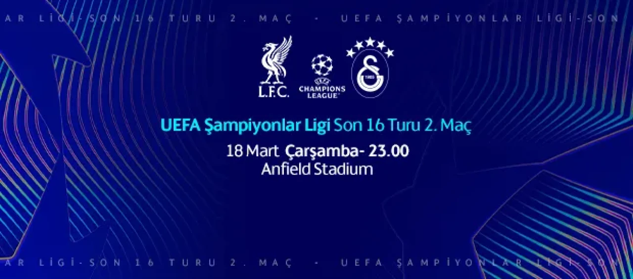 Galatasaray, UEFA Şampiyonlar Ligi son 16 turu rövanş maçında Liverpool ile deplasmanda karşı karşıya gelecek. Anfield Stadyumu’nda oynanacak mücadele 18 Mart Çarşamba günü TSİ 23.00’te başlayacak.