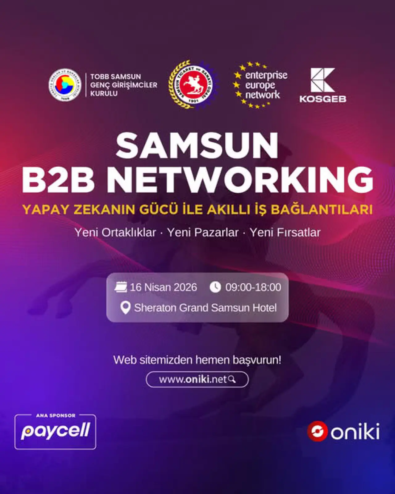 Etkinlik, Samsun Ticaret ve Sanayi Odası koordinatörlüğünde faaliyet gösteren TOBB Samsun Genç Girişimciler Kurulu öncülüğünde gerçekleştirilecek. Organizasyon, Enterprise Europe Network ve KOSGEB iş birliğiyle düzenlenecek. Etkinliğin ana sponsoru ise Paycell olacak.