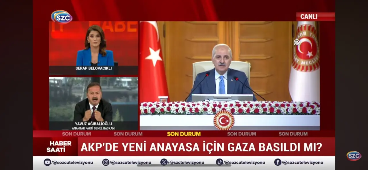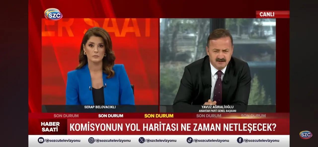 Anahtar Parti Genel Başkanı Yavuz Ağıralioğlu, Sözcü TV'de katıldığı Haber Saati programında, Serap Belovacıklı’nın sorularını yanıtlayarak anayasa tartışmaları ve terörle mücadele konularında çarpıcı değerlendirmelerde bulundu. Ağıralioğlu,