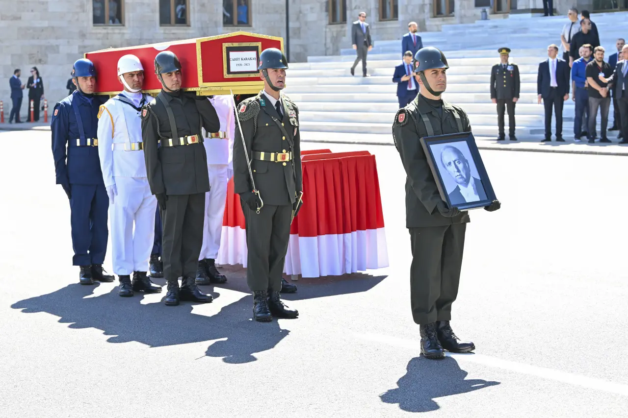 Eski TBMM Başkanı Cahit Karakaş için Türkiye Büyük Millet Meclisi’nde (TBMM) bir cenaze töreni düzenlendi. Törene, Karakaş’ın ailesi ve yakınlarının yanı sıra TBMM Başkanı Numan Kurtulmuş, AK Parti Grup Başkanı Abdullah Güler, AK Parti Genel Başkanvekili Mustafa Elitaş, CHP Grup Başkanvekili Murat Emir, Yeni Yol Partisi Grup Başkanvekili Mehmet Emin Ekmen, AK Parti Genel Başkan Yardımcısı ve Ankara Milletvekili Ömer İleri, DSP Genel Başkanı Önder Aksakal, eski TBMM başkanları Köksal Toptan, Mehmet Ali Şahin ve Bülent Arınç, eski CHP Genel Başkanı Kemal Kılıçdaroğlu, milletvekilleri ve Meclis çalışanları katıldı.