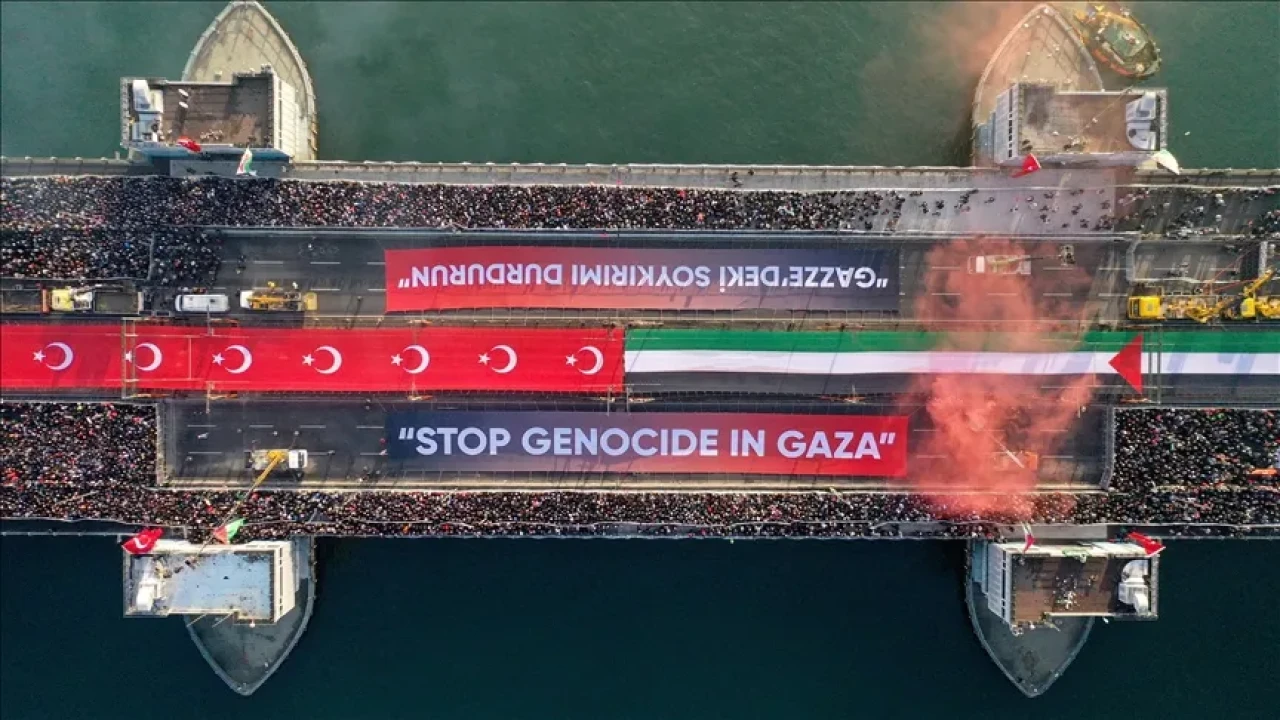 ÖNDER Genel Başkanı Abdullah Ceylan ise Galata Köprüsü’nden verilen mesajın güçlü olduğunu ifade ederek, Filistin’de adil bir barışın sağlanması için mücadelenin süreceğini söyledi.
