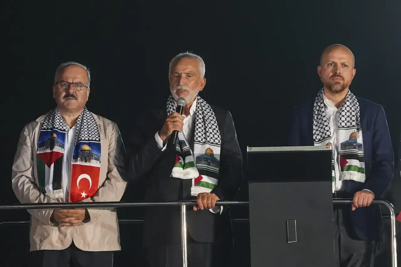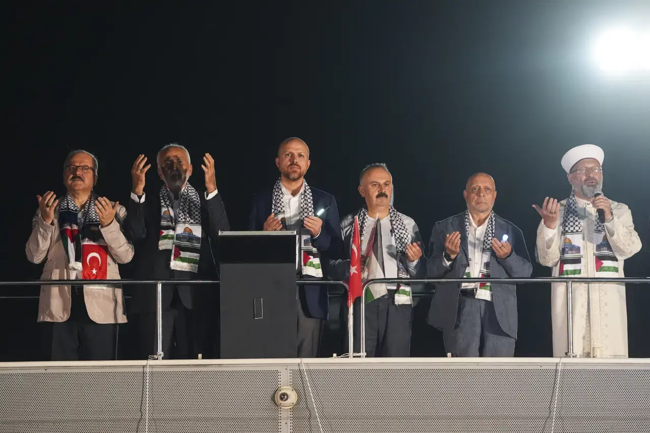 "Sizin gibi sokaklarda duyarlılığını gösteren, oraya yardım gönderen, gavurun malını boykot eden, onların giysisini, yiyeceğini, içeceğini ve yönetimlerini protesto eden kardeşlerimizin gayretleriyle bugün yönetimler, 'Eylül ayında biz Filistin'i tanıyacağız' diyorlar. Ne kadar samimidir bilemeyiz ama biliyoruz ki mücadele ve cihat bizi başarıya götürecek. Rabb'im bu cihadımızı kesintisiz başarıya götürsün inşallah. Platform olarak bunun sadece organizasyonunu yaptık. Sizlerin katılımıyla bundan sonra sokaklardan, meydanlardan asla ayrı kalmayacağız."