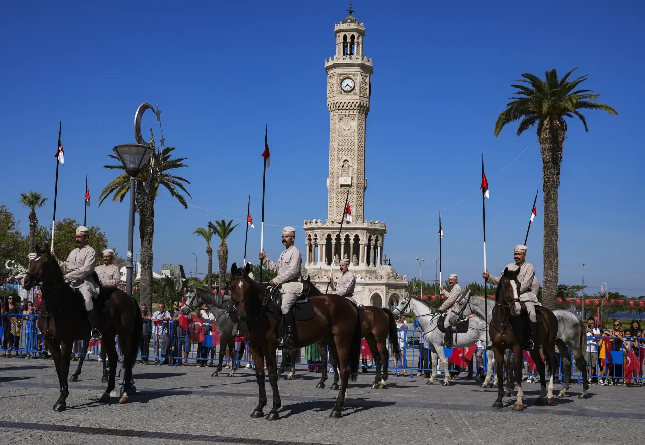dedi. Törene protokol üyelerinin yanı sıra çok sayıda vatandaş katıldı. Kutlamalar kapsamında Türk Hava Kuvvetleri’ne bağlı Türk Yıldızları ve SOLOTÜRK, İzmir semalarında hava gösterileri sunacak. Ayrıca, Cumhuriyet Meydanı’ndan Kültürpark Lozan Kapısı’na uzanan bir fener alayı düzenlenecek.