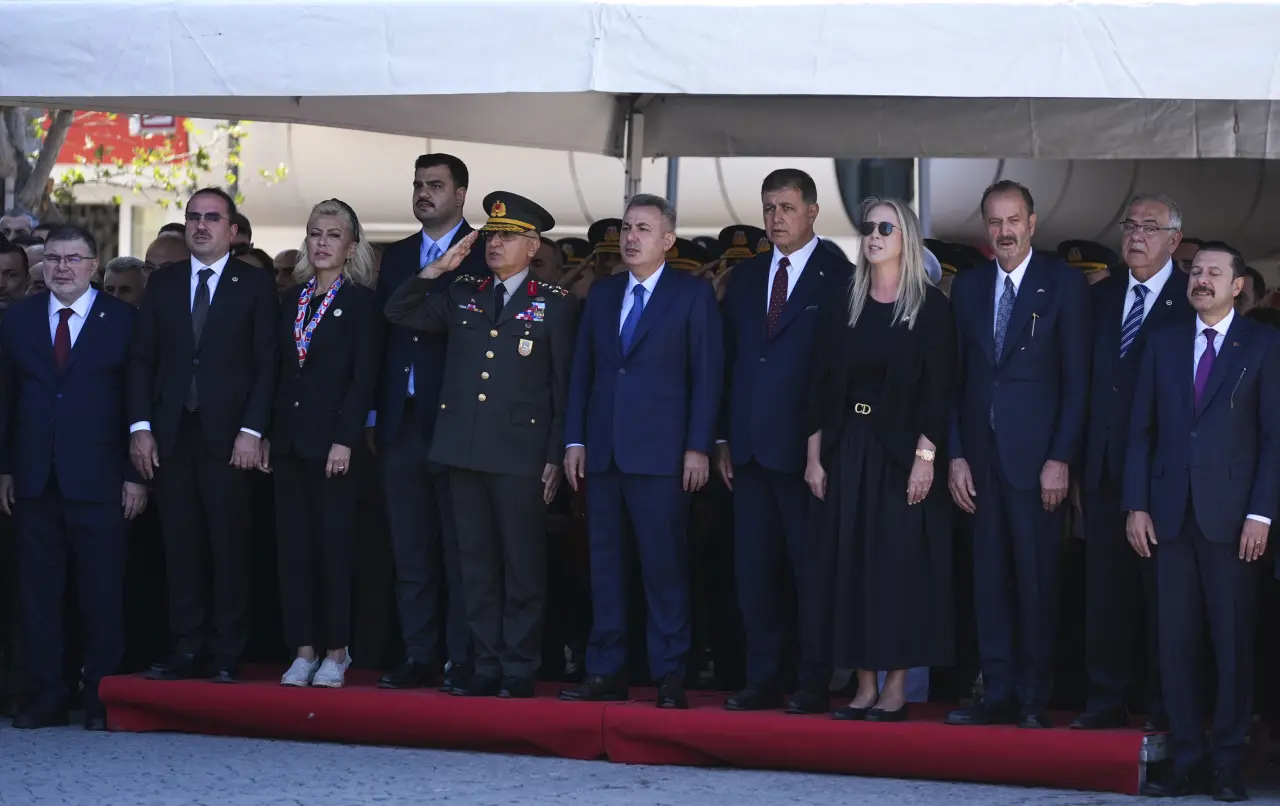 İzmir Valisi Süleyman Elban, Ege Ordusu ve Garnizon Komutanı Orgeneral İrfan Özsert ve Büyükşehir Belediye Başkanı Cemil Tugay, Cumhuriyet Meydanı’ndaki Atatürk Anıtı’na çelenk sundu. Ardından saygı duruşunda bulunuldu ve İstiklal Marşı okundu.