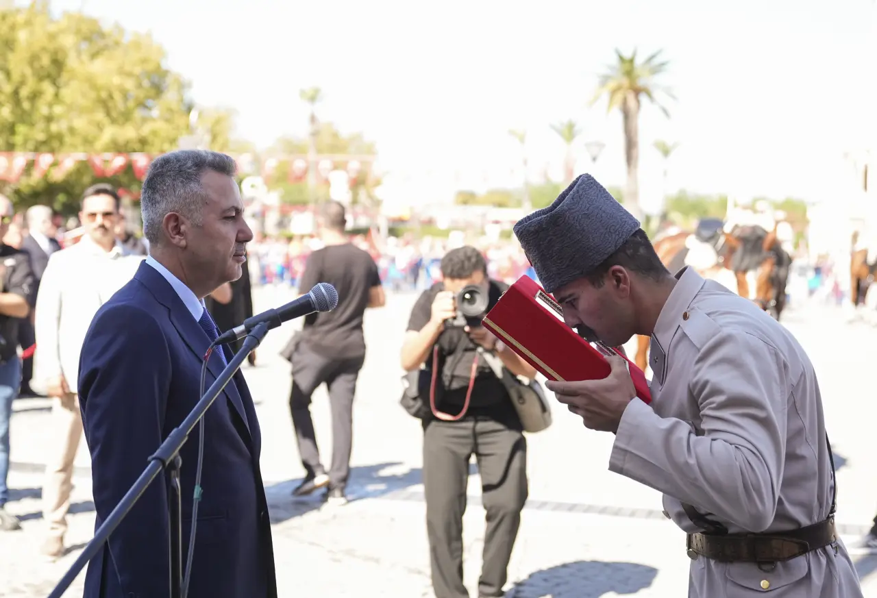 Törenin ardından Valilik Konağı önünde, süvari birliklerinin İzmir’e girişi canlandırıldı. Atatürk Meydanı’na ulaşan birlik, vatandaşlardan yoğun alkış aldı. Saygı duruşunun ardından Hükümet Konağı’na çıkan bir asker, Türk bayrağını göndere çekti. Vali Elban, süvari birlik komutanına Kur’an-ı Kerim ve Türk bayrağı takdim ederken, Tugay ise plaket sundu.