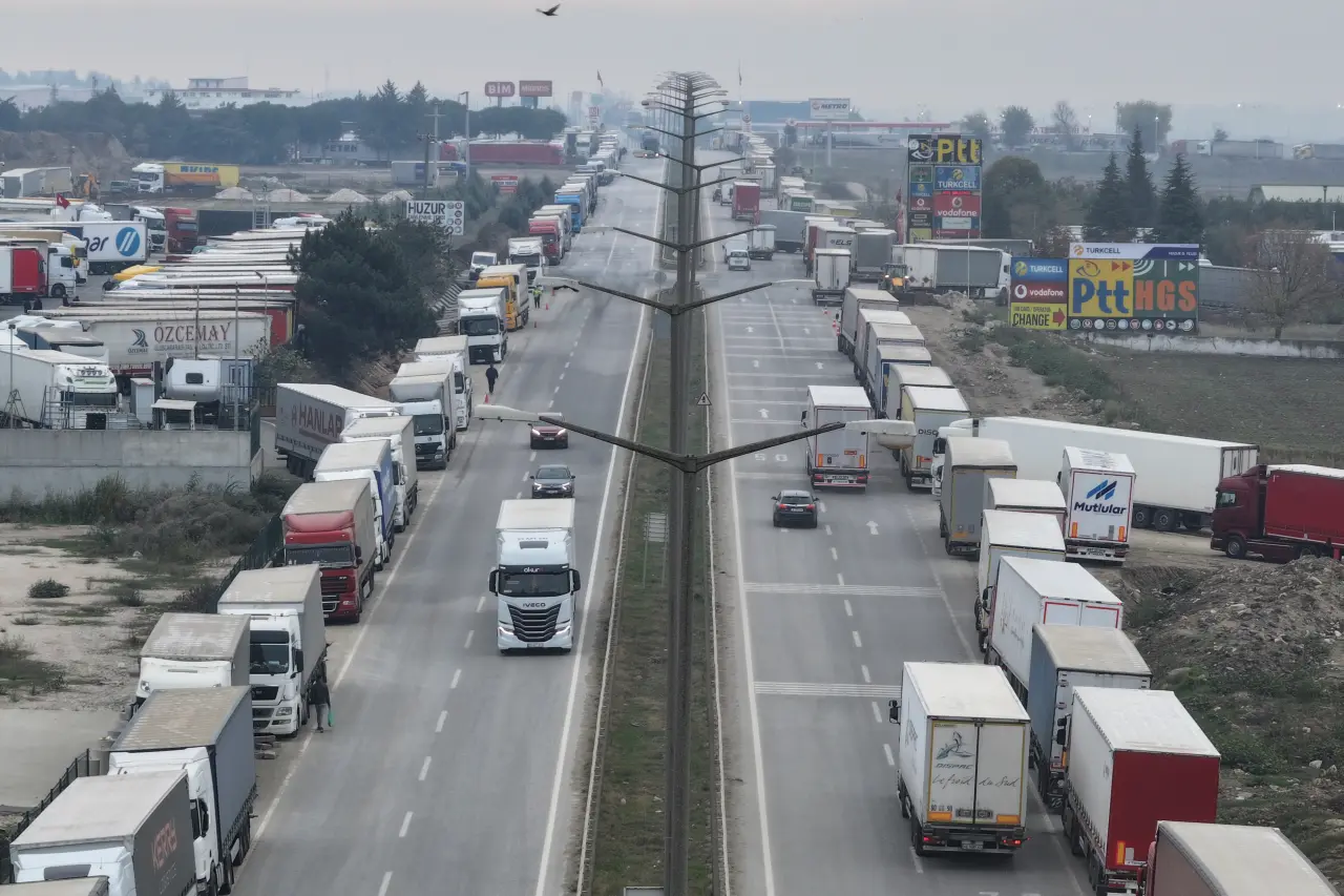 Kapıkule Sınır Kapısı’nda kara yolunun her iki yönünde yaklaşık 7’şer kilometrelik tır kuyruğu meydana geldi. Bölgedeki bir tır parkının ruhsatsız olduğu gerekçesiyle mühürlenmesinin ardından Avrupa’ya ihraç yükü taşıyan sürücüler, hem giriş hem de çıkışlarda park yeri bulmakta güçlük çekiyor. Dinlenme sürelerini tamamlamaları gereken sürücüler, araçlarını hareket ettirmemek zorunda olduklarından yol kenarlarında bekleyerek bu süreyi dolduruyor.