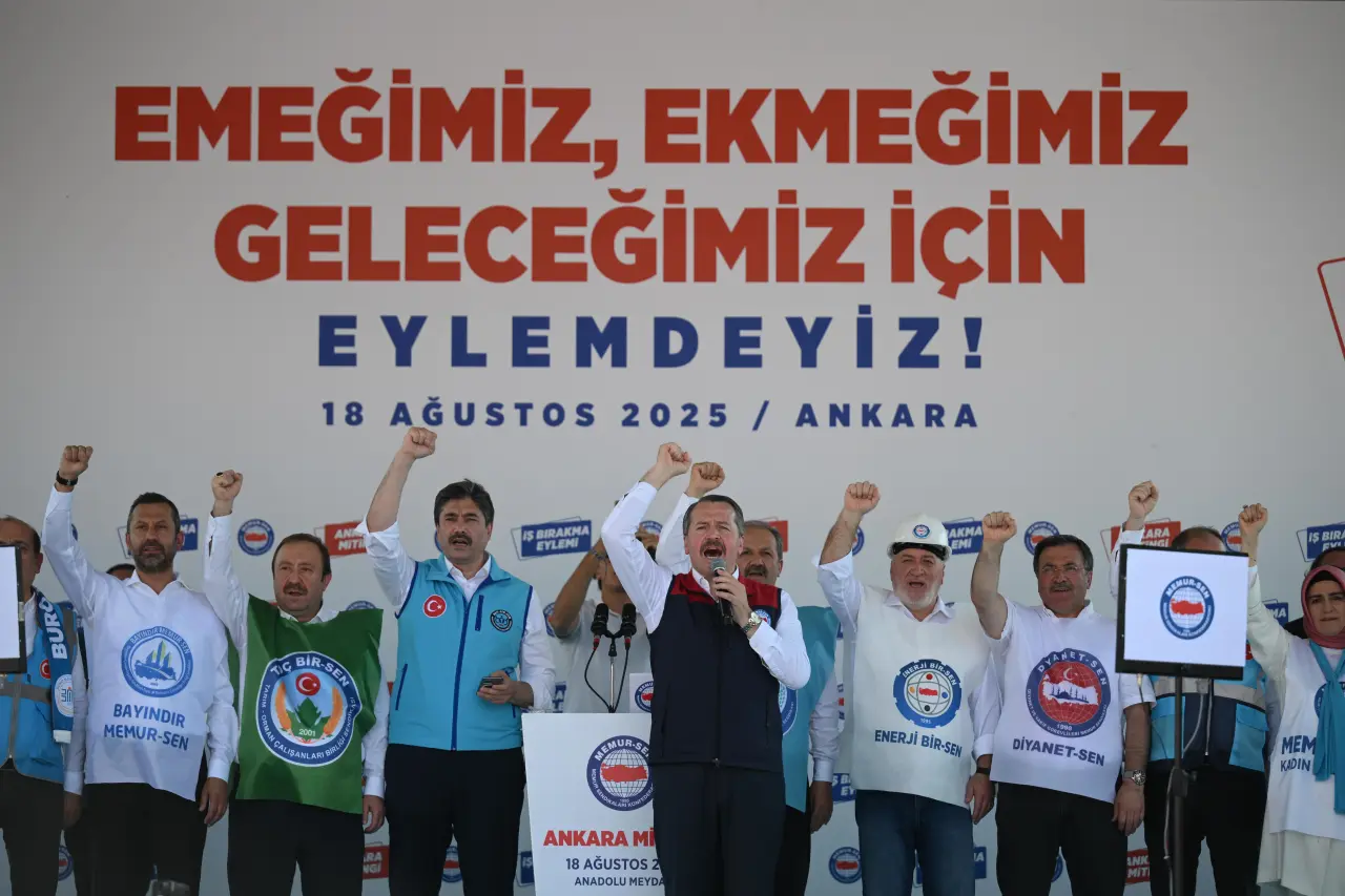 Ankara’da Memur-Sen ve bağlı sendikalar, 8. Dönem Kamu Toplu Sözleşmesi görüşmelerinde sunulan zam teklifini yetersiz bularak Anadolu Meydanı’nda bir miting gerçekleştirdi. Kamu çalışanlarının taleplerini dile getirmek için düzenlenen bu eylem, gelir adaletsizliğine dikkat çekti.