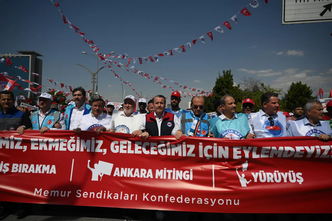 Memur-Sen üyeleri, miting öncesi genel merkez binası önünde toplandı ve Kazım Karabekir Caddesi üzerinden Anadolu Meydanı’na yürüdü. Yürüyüş sırasında, memurlar, “Noterlik yapan hakeme hayır”, “Öğretmene değer, her şeye değer”, “Biz masada çözelim dedik, teklifiniz sahayı gösterdi” yazılı pankartlar taşıyarak taleplerini sloganlarla ifade etti.