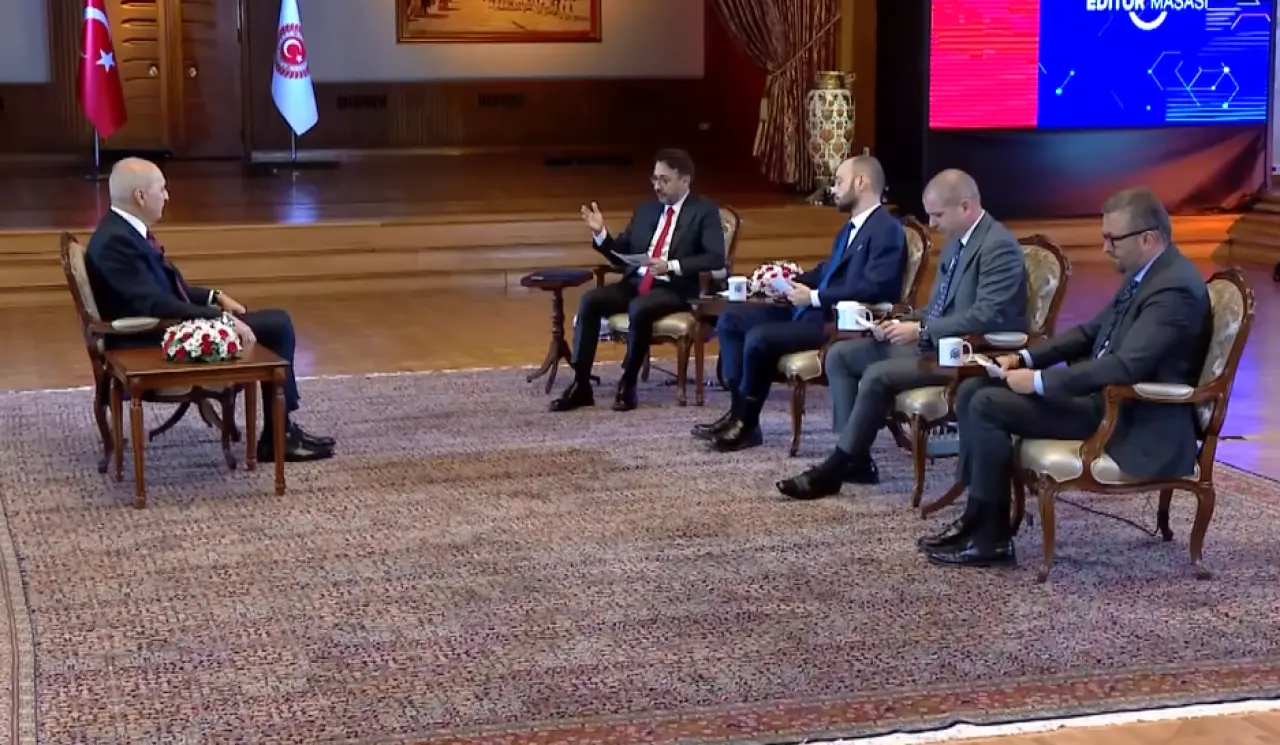 “SDG ve Suriye Kürtlerini ayrı görmek lazım. Örgütsel yapılar ayrı şeyler. Örgütsel yapıların hiçbirisi zaten toplumun tamamını temsil etmiyor dolayısıyla biz orada Kürtlerin, Türkmenlerin, Arapların bütün bu unsurların kardeşliğini sağlayacak bir çatının olmasını, bunun da ancak hak ve özgürlükler temelinde ve demokratik bir yapılanmayla, herkesin taleplerinin gündeme getirildiği bir yapılanmayla mümkün olacağını düşünüyoruz. İsrail, Türkleri çok seviyor da Kürtleri sevmiyor değildir. Kürtleri çok seviyor da ya da Arapları sevmiyor değildir. İsrail bu bölge halklarının hepsinden nefret eder. Siyonist rejimi kastederek söylüyorum. İsrail, bu bölge halklarının hiçbirisini insan yerine koymaz. Bunları kendilerine hizmet etmesi gereken mahluklar olarak görür. Dolayısıyla bölge halklarının dini, mezhebi, meşrebi, etnik kökeni ne olursa olsun bu realiteyi görmelerini istirham ediyoruz. Bizim bizden başka dostumuz yok. Bu bölgede yaşayan insanlar, hep beraber birlikte barış içinde, daha güçlü bir bölgeyi tesis etmemiz lazım. Terörsüz Türkiye için çırpınıyoruz. Terörsüz Türkiye’yi kurmayı başarırsak, hiç şüphesiz hemen o gün, ertesi güne kalmadan Terörsüz Türkiye, terörsüz bir Suriye’nin de kapılarını açacak. Terörsüz Türkiye, inşallah terörün tamamıyla ortadan kalktığı bir Irak’ı ve diğer bölge ülkelerinin kapılarını açacak. Hatta Lübnan’a ve daha güneyimizdeki ülkelere de etki edecektir diye düşünüyorum.”
