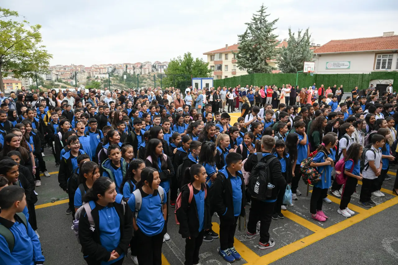 Başkentteki Çankaya Timur Ortaokulu’nda da öğrenciler, öğretmenler ve veliler sabah saatlerinde okul bahçesindeki buluşmada yeni dönemin heyecanını paylaştı.