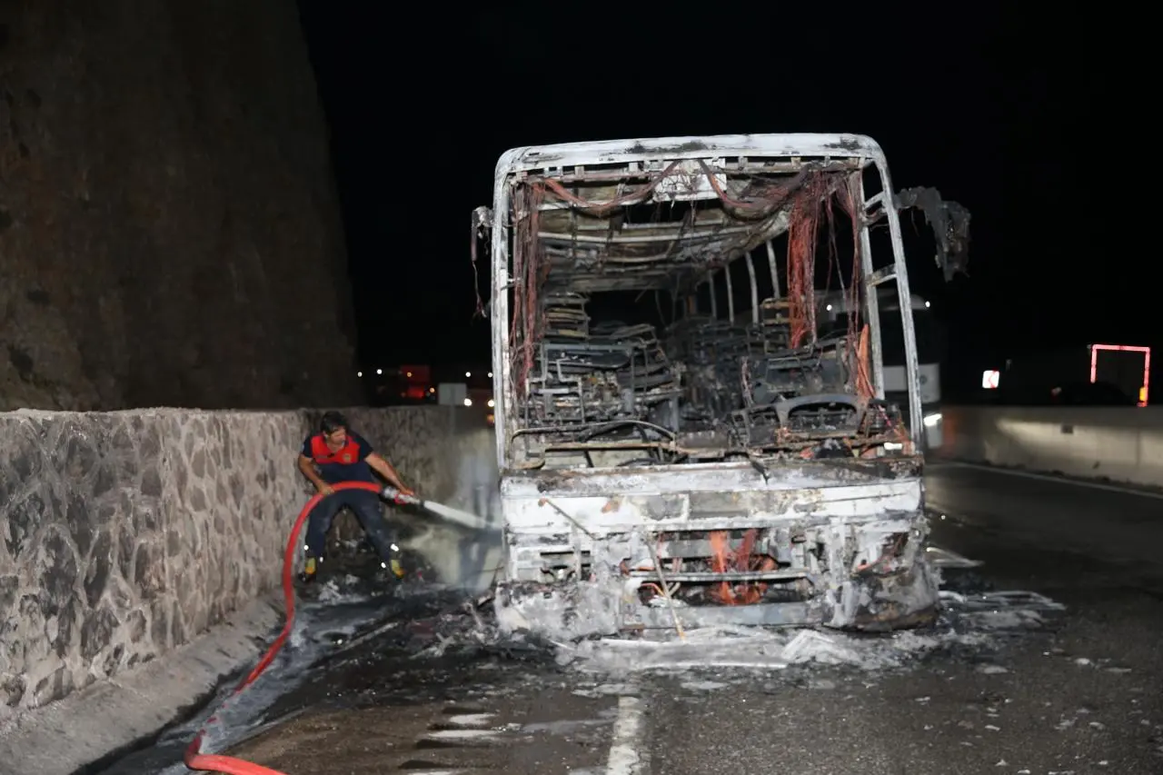 Yolcu otobüsünde çıkan yangın ekiplerce söndürüldü