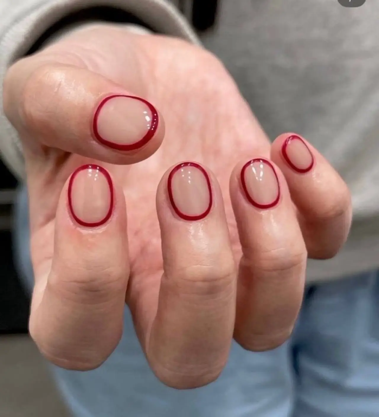 Kırmızı çerçeve, nude bazla birleşince hem sade hem de çarpıcı bir etki yaratıyor; ultra ince hatlar, şeffaf jel katmanlarla elde ediliyor.Sosyal medya platformlarında, özellikle Instagram ve TikTok'ta viral olan bu tasarım, "Japon kırmızısı" etiketiyle paylaşılıyor.