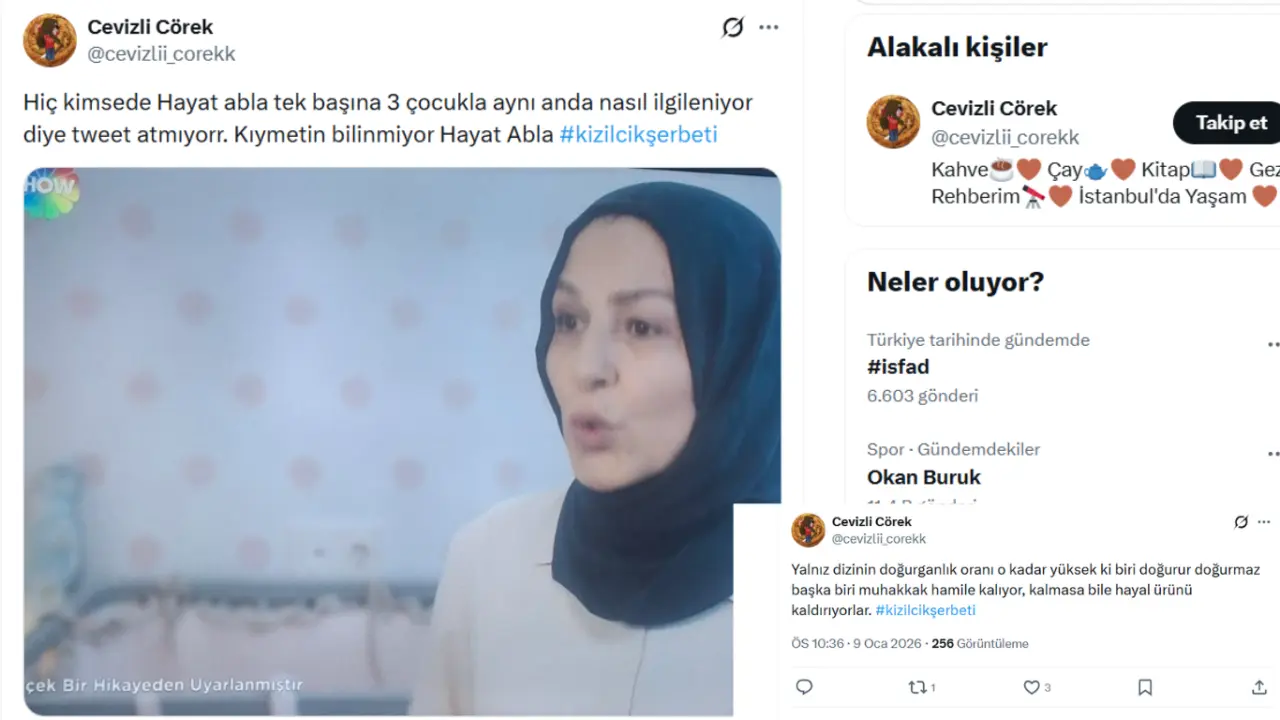 Öte yandan, karakterlere yönelik övgüler de eksik değil. "Hiç kimsede Hayat abla tek başına 3 çocukla aynı anda nasıl ilgileniyor diye tweet atmıyorr. Kıymetin bilinmiyor Hayat Abla" şeklinde bir paylaşım, Hayat karakterinin fedakarlığını vurguladı. İzleyiciler, bu tür detayların diziyi gerçekçi kıldığını savunurken, Sönmez Hanım gibi yan karakterlerin de takdir edildiği yorumlar öne çıktı.