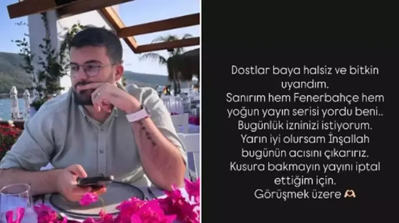 Fenerbahçe taraftarı olduğu bilinen yayıncı, son Instagram hikayesinde baş ağrısından şikayet etmiş ve Fenerbahçe'nin Benfica maçına gelmek istediğini paylaşmıştı.
