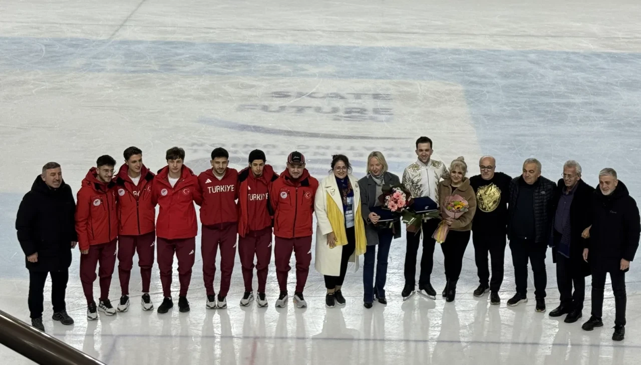 Federasyon Başkan Vekili Engin Yaşar, asbaşkanlar Hayrettin Kadıoğlu ve Orhan Şahin, yönetim kurulu üyesi Derya Aksoy ile olimpiyat kotası alan Furkan Akar ve Deniz Örs, olimpik kadro sporcularıyla buza çıkarak jübile yapanları tebrik etti.