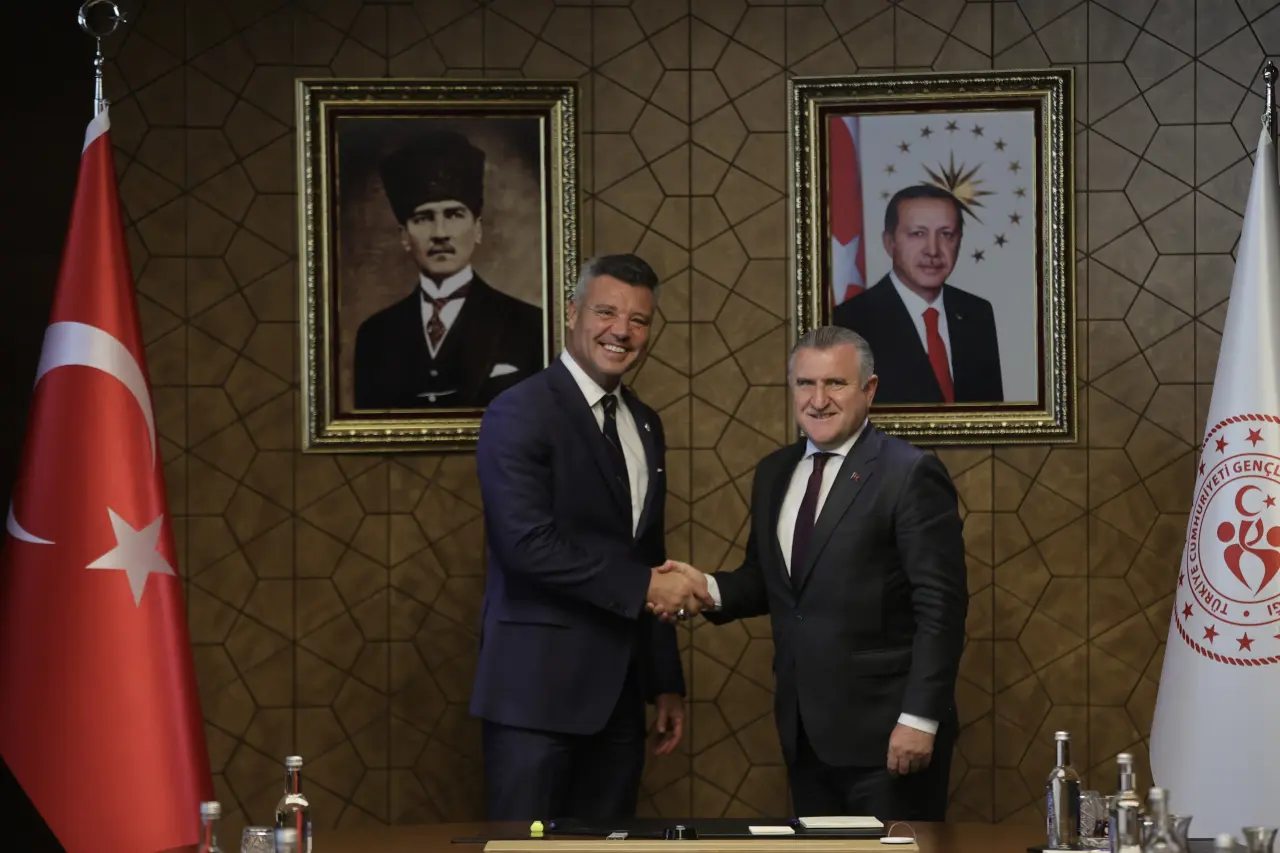 Görüşmenin sonunda Fenerbahçe Kulübü Başkanı Sadettin Saran, Bakan Osman Aşkın Bak’a, sarı-lacivertli futbolcuların imzasını taşıyan bir forma hediye etti.