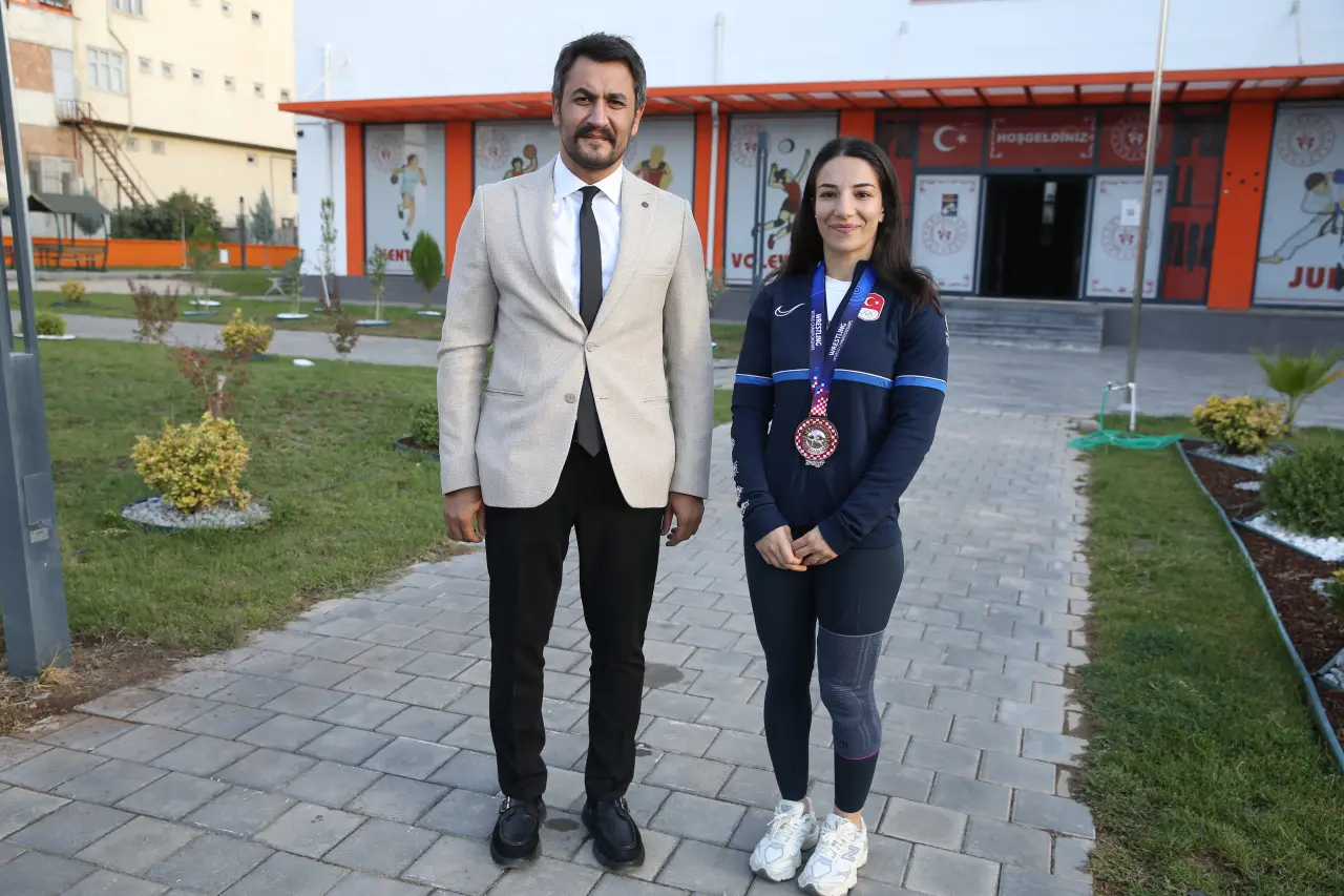“Elde ettiği başarılar ve örnek kişiliğiyle Evin’in adının kentteki tesise verildiğini anımsatan Çalgan, ‘Evin, Siirt’te mücadele, başarı ve azim demek. Son müsabakasında bizleri de son derece gururlandırarak bronz madalyayı ülkemize getirdi.’” dedi.