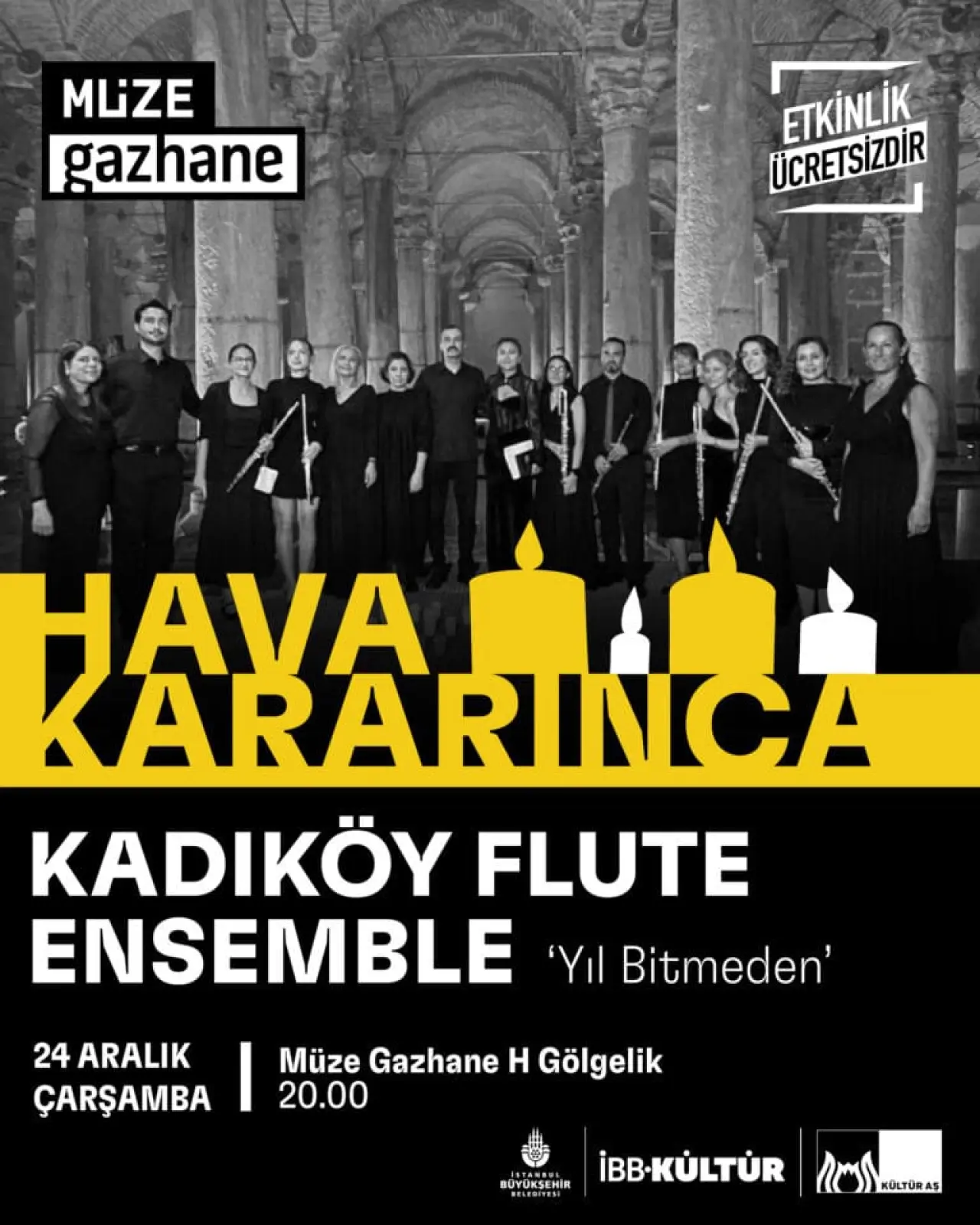 İSTANBUL – Türkiye’de flüt toplulukları alanında öncü oluşumlardan biri olan Kadıköy Flüt Ensemble, “Hava Kararınca” başlıklı konseriyle müzikseverlerle buluşmaya hazırlanıyor. Etkinlik, 24 Aralık Çarşamba günü saat 20.00’de Müze Gazhane H Gölgelik alanında gerçekleştirilecek.