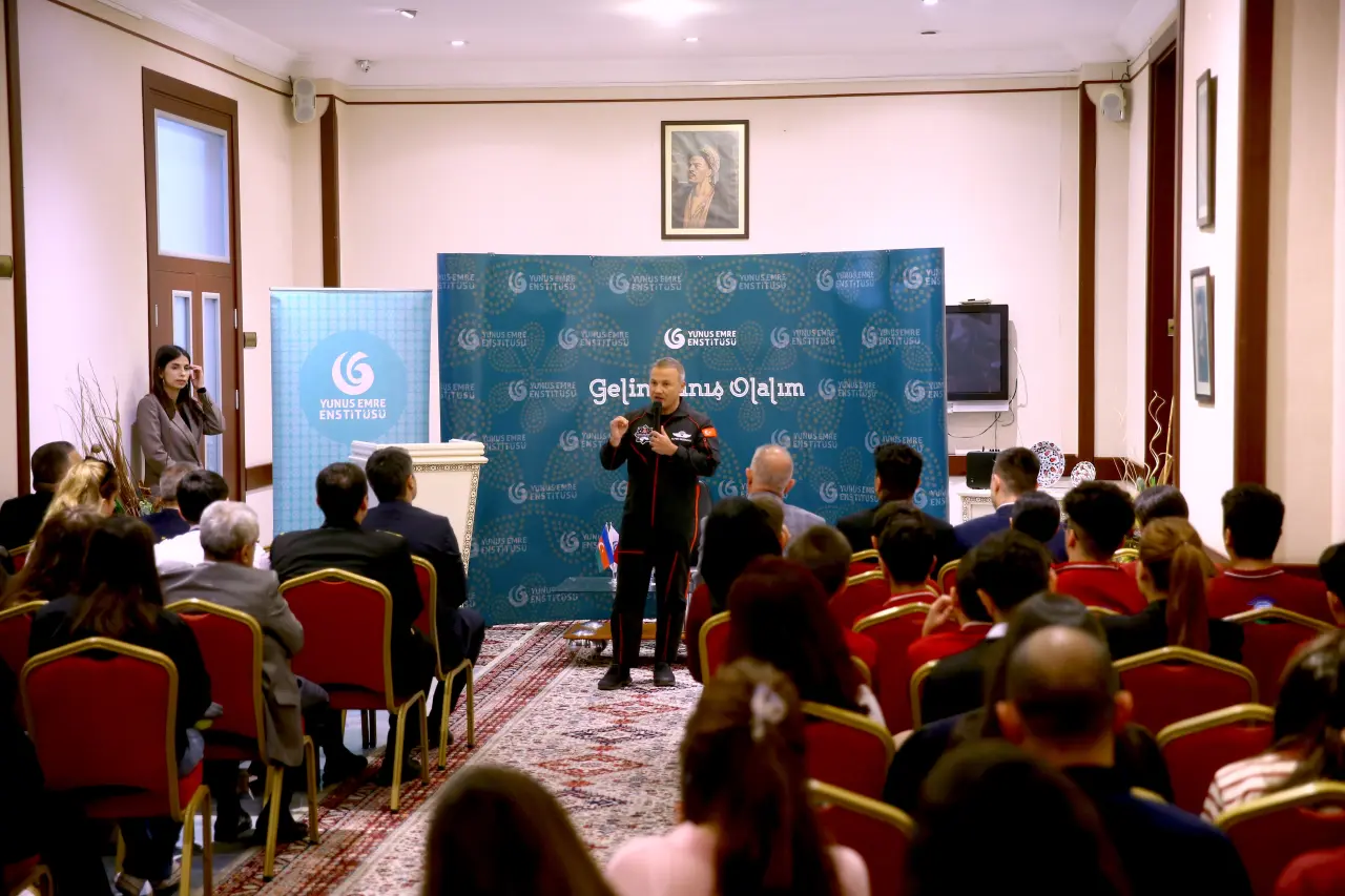 Bakü Yunus Emre Enstitüsü Müdürü Gökhan Seyhan ise Gezeravcı’yı ağırlamaktan duyduğu memnuniyeti dile getirdi. Seyhan, Gezeravcı’nın uzay misyonundaki derin tecrübelerinin ve gençler için açtığı yolun büyük bir değer taşıdığını ifade etti.