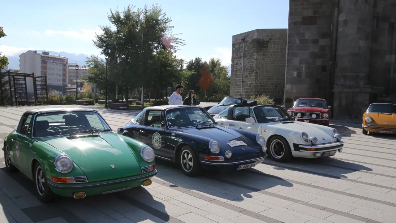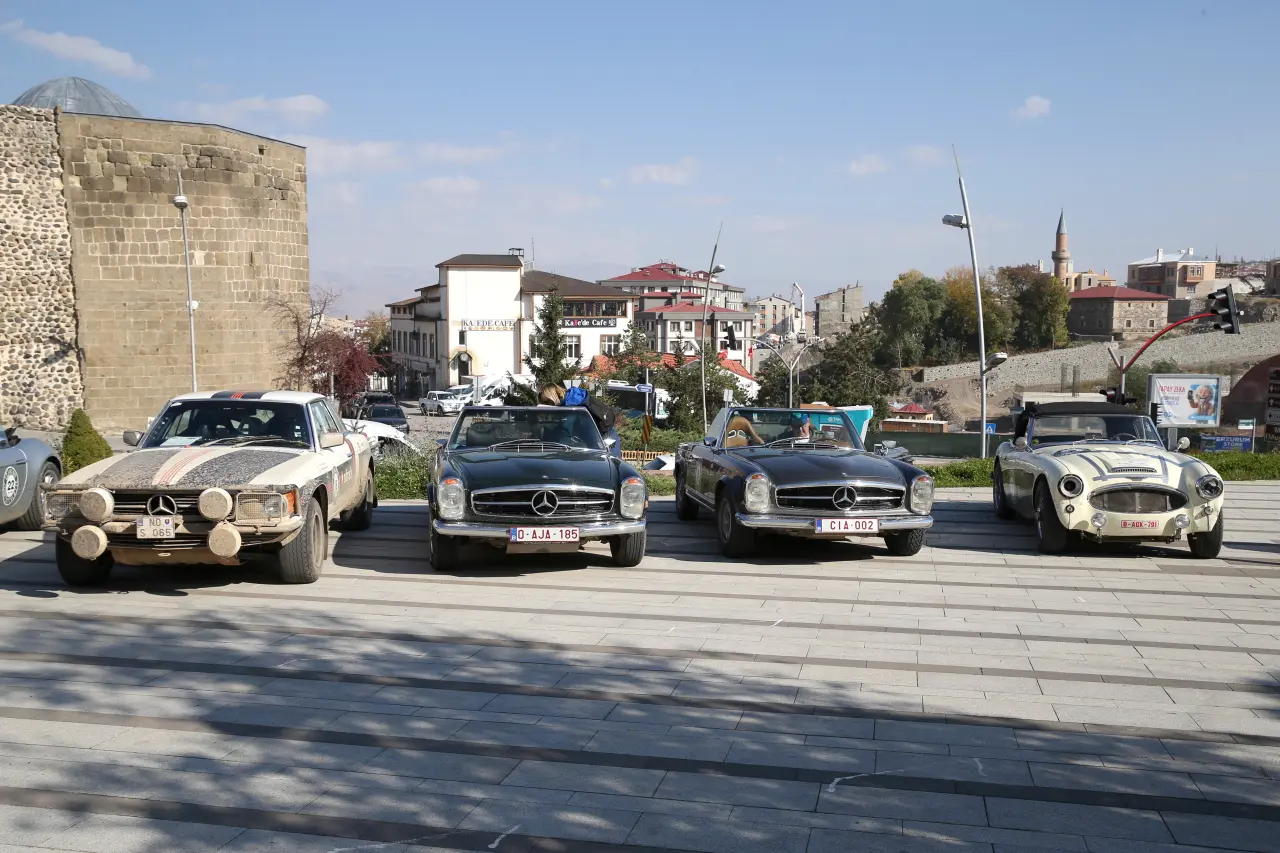 Belçika’dan yola çıkan klasik otomobil meraklıları, Azerbaycan ve Gürcistan’ı geçerek Türkiye’ye ulaştı ve 6 günlük Doğu Anadolu turuna Erzurum’da start verdi. En eskisi 1928 model 28 araçlık konvoy, Çifte Minareli Medrese önünde sergilendi.