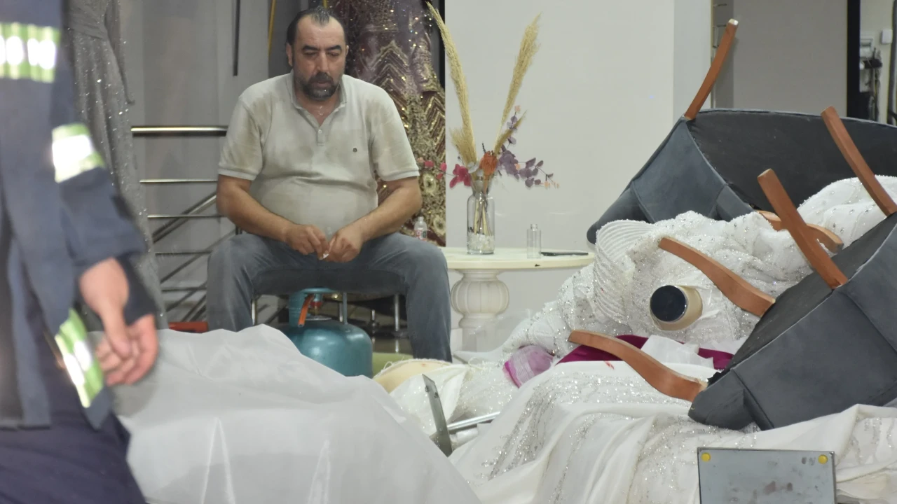 İhbar üzerine olay yerine giden polis ekipleri, şüphelinin elinde çakmakla gelinliklerin üzerine kolonya döktüğünü ve mutfak tüpüyle iş yerini ateşe vermeye çalıştığını tespit etti. Polis ekiplerinin müdahalesiyle itfaiye ve sağlık ekipleri de bölgeye sevk edildi.Şüpheli, polis ve akrabalarının ikna çabalarına rağmen teslim olmadı. Tüple iş yerini ateşe vermeye çalıştığı sırada itfaiye ekipleri tazyikli su kullanarak şüphelinin dikkatini dağıttı.