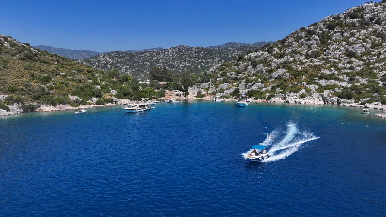 Antalya’nın Demre ilçesindeki Hamidiye Koyu, masmavi denizi ve tarihi dokusuyla ziyaretçilerin gözde duraklarından biri olmaya devam ediyor.