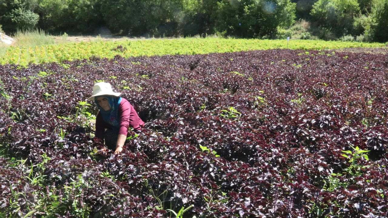 Yaklaşık 11 yıldır mor reyhan yetiştiren üretici Necla Karakaya, bu yıl üçüncü kez hasat yaptıklarını belirterek verimden oldukça memnun olduklarını söyledi.